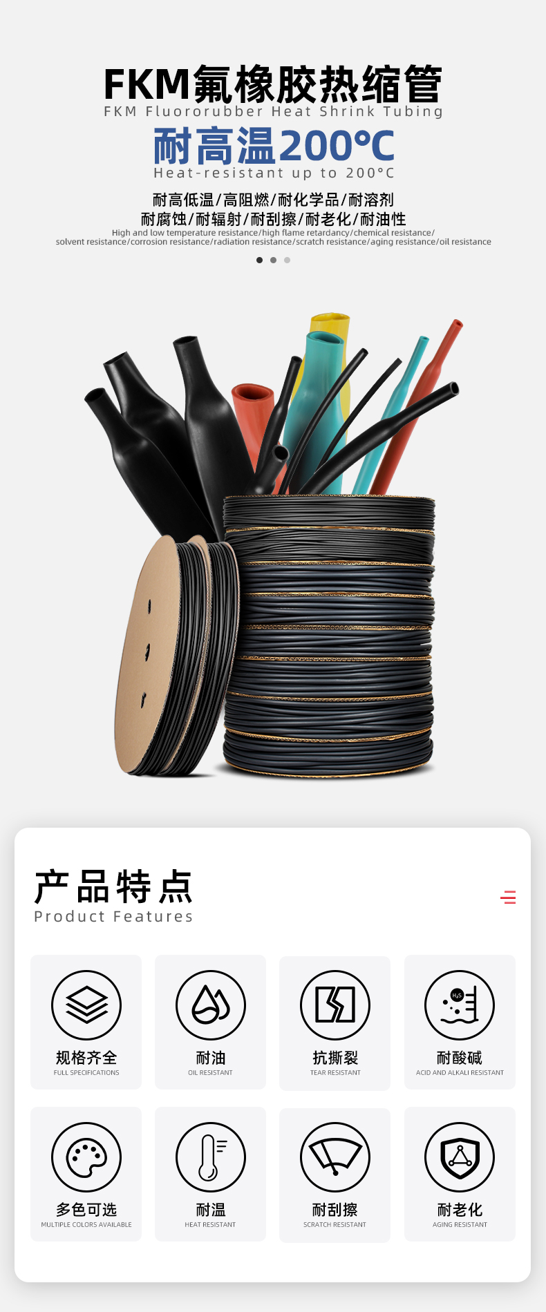 产品简介:由辐照交联特种含氟聚合物PVDF制成,具有优异的耐化学腐蚀和耐溶剂性能,是一种坚固、半硬、薄壁的热缩管,